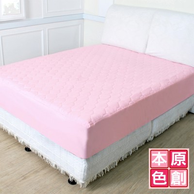 【台灣製造】清新色彩 雙人舖棉床包型保潔墊(淡粉)