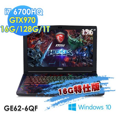 【msi微星】GE62 6QF-089TW 15.6吋 i7-67000HQ(16G特仕版 暴雪機)