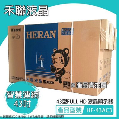 應該就是「 【免運費+含稅價】HERAN禾聯 43型智慧聯網液晶顯示器+視訊盒 HF-43AC3【無基本安裝】 」