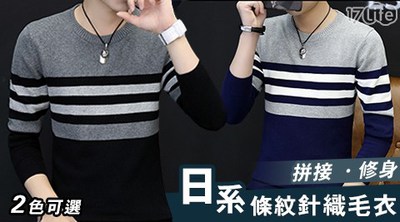 指定商品! 年終盛典!【買一送一】條紋拼接修身型男針織毛衣的開箱評價