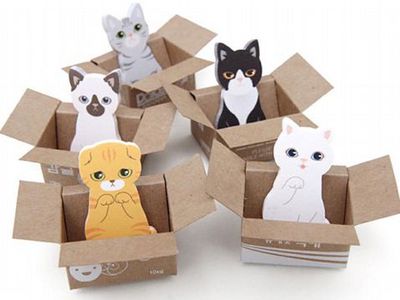 商品名稱: 韓版可愛貓咪紙箱立體造型便利貼(1入) ~~款式隨機出貨