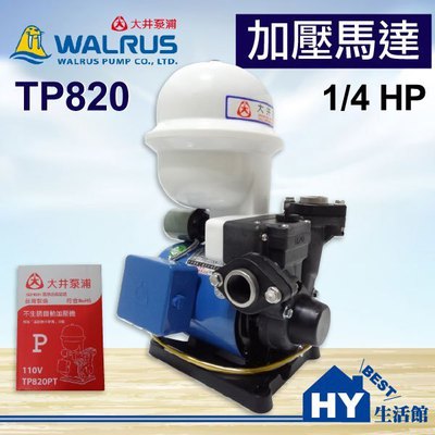 【 大井泵浦 TP820 加壓馬達。1/4HP 不生銹 塑鋼抽水機 加壓泵浦 自動加壓機。附無水斷電 另售 TP825 】