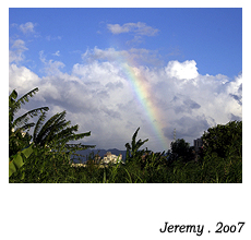 又拍到彩虹了~是一整個半圓但是小相機拍不起來.....而且顏色淡到不能再淡,只好用軟體加強。 昨天跟今天下午都有出門騎車,但是不是出門時有雨後來放晴,就是本來以為用不到雨衣結果沒半小時又...