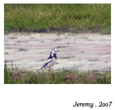 好像是白鶺鴒。 原來是喜鵲。 應該是紅隼。 同上。 應該是大白鷺。(有黃色的嘴喙與S型的長脖子) 小白鷺。(黃色的腳、黑色的嘴喙) 所有照片皆攝於大漢溪右岸...