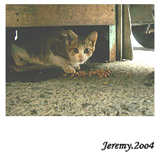 市場裡的浪喵(流浪喵的簡稱)三人組,從昨天起卻只剩下二號喵---小橘。本來還以為其他兩隻只是到處蹓蹓剛巧不在,結果今天仍然只見小橘留守,看來是被人抱養了。 看他一隻喵怪可憐的,在回家前倒了一些乾...