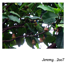 就在我們發現一棵結實纍纍的蓮霧樹,正在欣賞的時候,我看到了一隻鳥正在啄食蓮霧,牠臉上的色彩很多,頸部以下是綠色的,老爸興奮地說那隻是五色鳥,趕緊叫老媽過來看,這大概是我第一次看到五色鳥吧~我也超開心的~