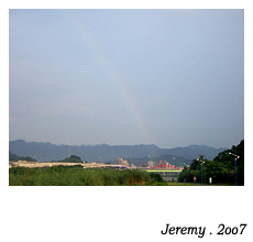 又拍到彩虹了~是一整個半圓但是小相機拍不起來.....而且顏色淡到不能再淡,只好用軟體加強。