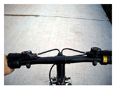 (照片裡,我一手握著車把,一手拍照,雙腳同時仍然持續踩轉踏板,以為可以抓到晃動的現象,沒想到最後還是拍不出我想要的速度感)