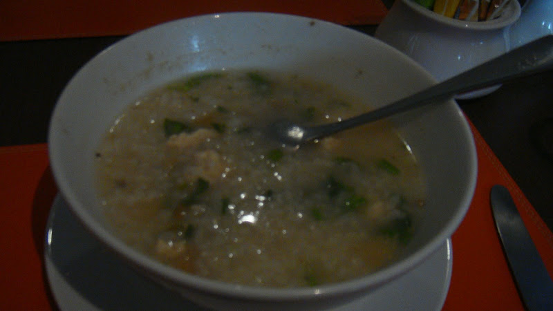 主要的差別 前者是 稀飯加上三種肉類(蝦 豬 雞)