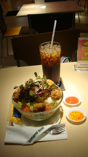這個沙拉除了配上泰國專有的酸辣醬之外