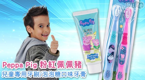 只要129元起即可購得原價最高1200元Peppa Pig粉紅佩佩豬卡通系列:(A)兒童專用牙刷1組/(B)泡泡糖口味牙膏1入/6入,購買6入方案再加贈牙刷1組/(C)兒童專用牙刷2組+泡泡糖口味牙膏2入。