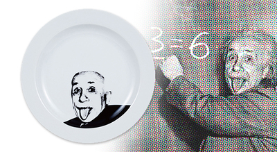 sunart愛因斯坦餐盤底部巧妙的印刷留白讓你自己擺上食物加以變化,絕對能逗得每個人都開懷大笑,原來吃飯也可以這麼有趣!