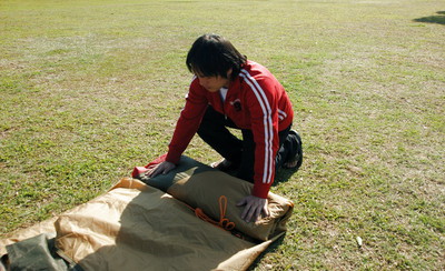 先鋪上嘉隆210D的尼龍地布,再將喜馬拉雅的帳篷內帳放置在地布上。