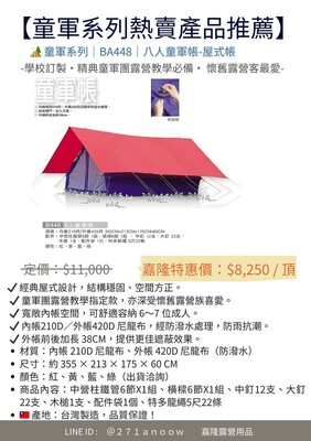 CHIA LUNG 嘉隆|八人童軍帳/屋式帳 BA448