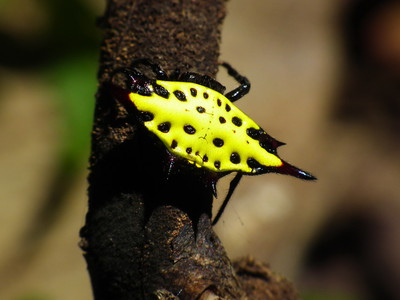 蟲詩三百首102梭德氏棘蛛鮮黃如蕉。亮眼外殼如蟹。美味?尖刺如箭。駭人妾身是蛛。驚喜不知道什麼原因它在地上...