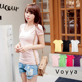 【Voyya】純色圓領公主袖上衣-女-粉紅-S.M.L