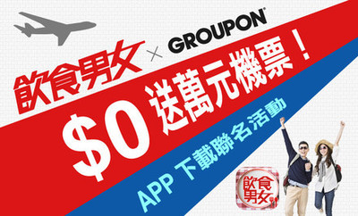 【台灣酷朋Groupon】【GROUPON x 飲食男女】聯名活動 ─ $0 送萬元機票!