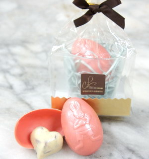 隨機選取二款組合成一顆立體蛋型,內含一顆巧克力
