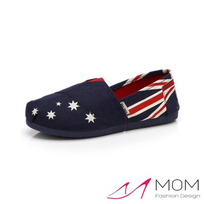 【MOM】美式潮流休閒舒適帆布鞋 懶人樂福鞋(星星國旗)