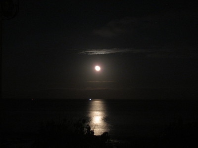 11點,老婆叫我往窗外看,月亮就這麼掛在海平面上,我們趕緊衝了出去,這次旅程有了一個完美句點,因為不是單眼相機,照的有點模糊,這是美中不足的地方,但這樣的畫面會在我的生命記憶裡,永遠也忘不了。