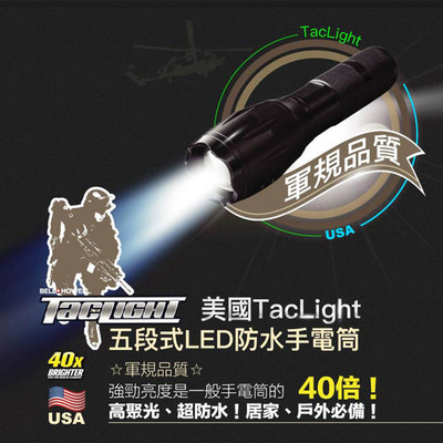 搶便宜【美國TacLight】五段式LED 防水強光手電筒(軍規等級 防颱 露營必備 輕巧方便)-限時活動折扣