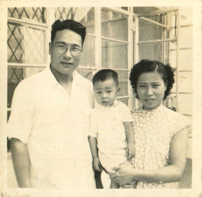 父母與我,1947,香港。《永遠的憾疚──憶母親》返觀童年第一張映現的臉龐:媽媽──源初的視覺締構日後所有的形...