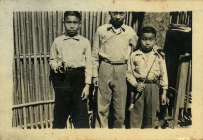 民國 46 or 47 年(1957 or 58) 台北賓館園遊會,母親與我們三兄弟留影,父親拍的照。那天我鬧...