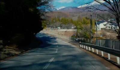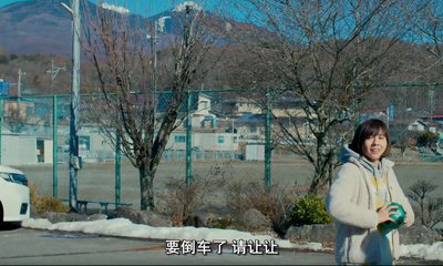 《邪惡》片中,父親第一次沒接到女兒,然後開車離開時,鏡頭拍攝後車窗所見。車子轉彎離開,老師囑咐玩一二三...