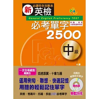 書中還附贈2CD,建議大家充分利用生活中一切零碎的時間,反覆多聽CD,在密集的刺激下,把單字跟文法背熟,也為聽力打下了堅實的基礎,並在此基礎上,配合大量閱讀和做題。相信您不僅是中級單字,還包括文法,絕對能以最快的速度完全掌握。