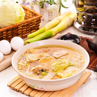 嚴選翠玉白菜及白蘿蔔下去熬煮6小時的鮮甜湯頭