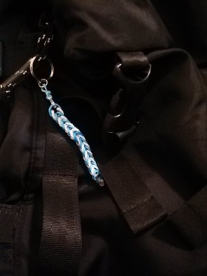 誰說手上拿薩克斯風才能練薩克斯風? 今天到大哥家拜訪,大姪女送了我照片中的吊飾.. 剛進門就看到小CC在耍寶,然後她姐姐NANA正專心地玩著手上的小玩意兒,看起來像女生綁頭髮的橡皮筋,但是比較小條且顏...