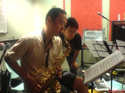 在這次的”同樂”團練中,solo了三次,=_=”而且是每個人,因為沒前輩在,於是建議大家多練膽量,然後互相表達聆聽過後的感覺,也算是一種膽量訓練和交流,這方式其實對新手來說並不是個好方法,因為都在自爽,但沒人帶的話,只好跳過基礎往別的方向去練習,阿漢和Alex可能會怕鐵吹吧..!!其實他們把薩克斯風看的太重了,就拿我現在來說,只要知道自己在做什麼..就夠了..在solo中間的個人練習等待時間,與團友們分享了自己對”情境”的看法,說話的同時,發覺對音樂的認知好像又跳進了另一個層面,未必變高,但確實有變廣..=_=”..可能跟Lion長時間以來的”薰陶”有關係吧..!!