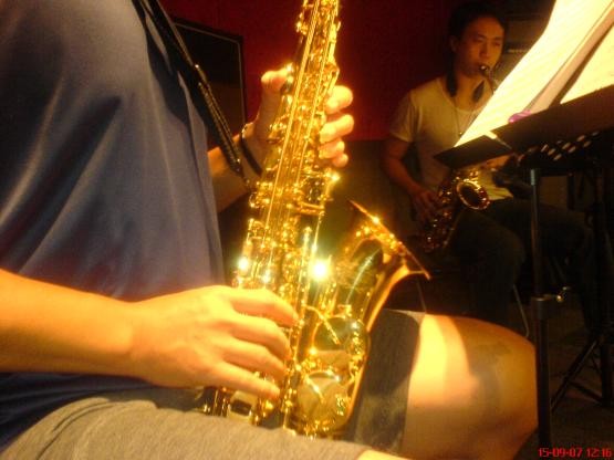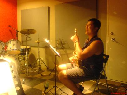 Lion的怪癖..喜歡拍薩克斯風的特寫,這張不小心拍到我在角落的薩克斯風是Alex的,之前有把那個角格放過,放在前兩篇中,其實,我很喜歡這張的感覺,如鬼魅般地存在於角落,知道我的存在卻察覺不到我的存在..=_=”寫到這,好像和某種女性衛生用品一樣...