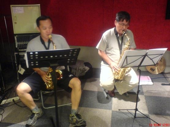 老大說過,視譜能力只是時間的關係,不用太在意,星期六團練有這種感覺了,這一陣子專注在嘴型上,已經很久沒看譜練了,這次老大拿了幾張新譜來,回家後玩了一下,果然適應的比較快,看來這點比較不擔心了,假以時日自然會出現應有的程度..!! 沒看譜練除了在練嘴型,也要刺激音感,沒譜..? 怎麼自己玩一兩個小時呢...? ^_^”..可以的..!! 長音...就半小時了..其他都在玩音感,半音階和各項小技巧的練習穿插在每一首曲中間的休息片段..這次練習想到個重點,老大一直強調的重音控制運用方法..好像是Swing中非常重要的基本技巧..!!