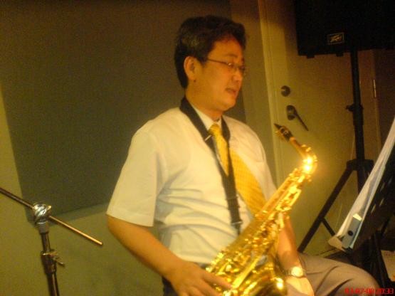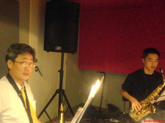 人和人之間確實是會互相影響,在沒人的要求下,久而久之,許大哥和蘇大哥都把薩克斯風放到了右腳外側,以前許大哥是夾在”改邊”的,蘇大哥我就不太記得了,不過,他的姿勢確實比以前看起來自然多了,至少身體往左傾的角度有慢慢在”歸零”...^_^”..以前看蘇大哥演奏都會覺得薩克斯風在欺負他,一直壓他的身體...