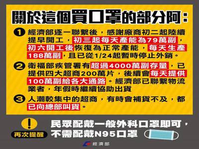 買不到口罩 經部促廠商初二提前開工今起供貨