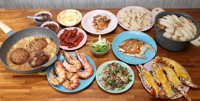 邵庭為烹調滿桌年菜賀新年,紅燒獅子頭、螺鮑干貝竹笙雞湯、鹽焗手臂蝦、烏魚子、煎白鯧、鹽酥白帶魚卷、蒜香奶油焗烤龍蝦、海鮮水餃、蘿蔔糕、桂圓銀耳湯,不多不少共10道菜,她說,「我爸媽是外省人,很在意年夜飯,桌上必10道菜,若少一道,媽媽必定衝去廚房炒個菜或弄個涼拌來補,寓意10全10美。」