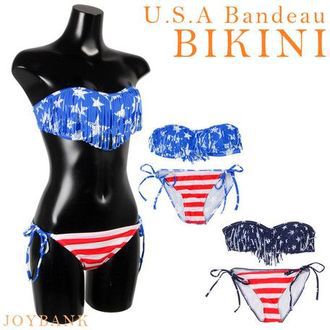 期間限制泳裝女裝條紋抹胸比基尼星星和條紋美國國旗圖案明星邊界協調海池 * 福經銷據點