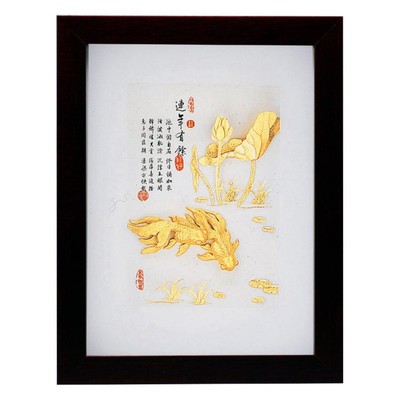 【鹿港窯】立體金箔畫-連年有餘(古香系列22.7x17.6cm)