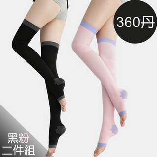 美魔女@【足下物語】臺灣製 360丹美化曲線睡眠襪 2件組(黑-粉)
