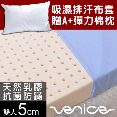 【便宜】【送枕x2】Venice透氣5cm乳膠床墊-吸濕排汗表布(雙人5尺)