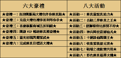 Efunfun《天啟》S17『酒劍仙』震撼開啟六大豪禮八大活動齊給力活動一至五為遊戲內郵件發放,活動六需要玩家在活動介面領取,活動七、八為遊戲中自動開放★豪禮一:喜迎開服兩大禮包伴你修真路★ 做人常...