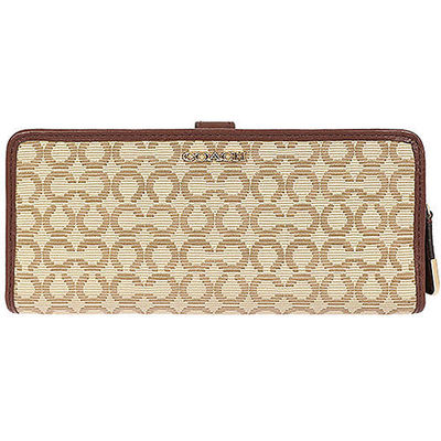 週年慶特會賣-【COACH】專櫃madison系列香檳色小c logo織紋布咖啡皮革邊拉鍊中夾 推薦