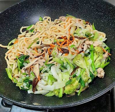 20220207陽春拉麵 市場買來生麵.......... 大量蔬菜作料.......... 利用年菜所餘.......... 作來簡單方便.......... 喜歡拉麵...