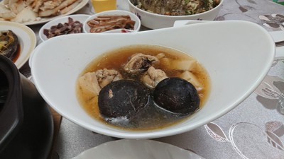只放山藥和花菇,料愈單純湯頭愈鮮甜..........