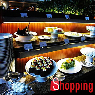 豐盛的開放式自助餐台提供中西日式美食佳餚,包括現點主菜、熱菜、冷盤、生鮮及甜點水果等餐點。各種食材擺盤的相當美麗、規矩,不會讓菜色一團亂的放在盤子內。