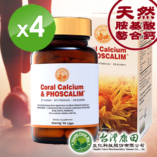 【即期出清-臺灣康田】珊瑚鈣+魚骨鈣Coral Calcium & PHOSCALIMR(60粒-瓶-保鈣4入組) 教育