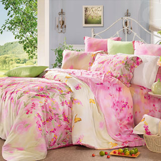 【巴麗維亞】粉戀春語(雙人100?絲TENCEL孕韟”漭帠Q床包組)