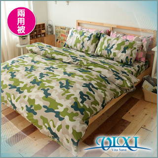 【VIXI】《抽象迷彩》透氣舒芬棉雙人兩用被(綠) 培訓
