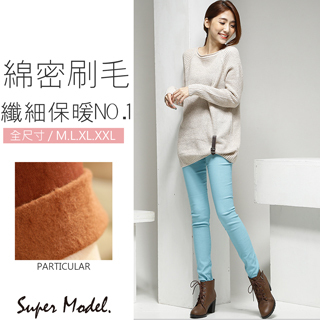 【名模衣櫃】保暖內刷毛魔力修身鉛筆褲-天藍(M-XXL)